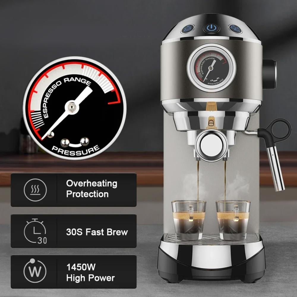 اله اسبريسو تمنحك تجربة احترافية لصنع قهوتك المفضلة في دقائق، بقوة عالية وتقنية الحماية من الحرارة الزائدة، لتستمتع بنكهة غنية وجودة لا تُضاهى في كل كوب.