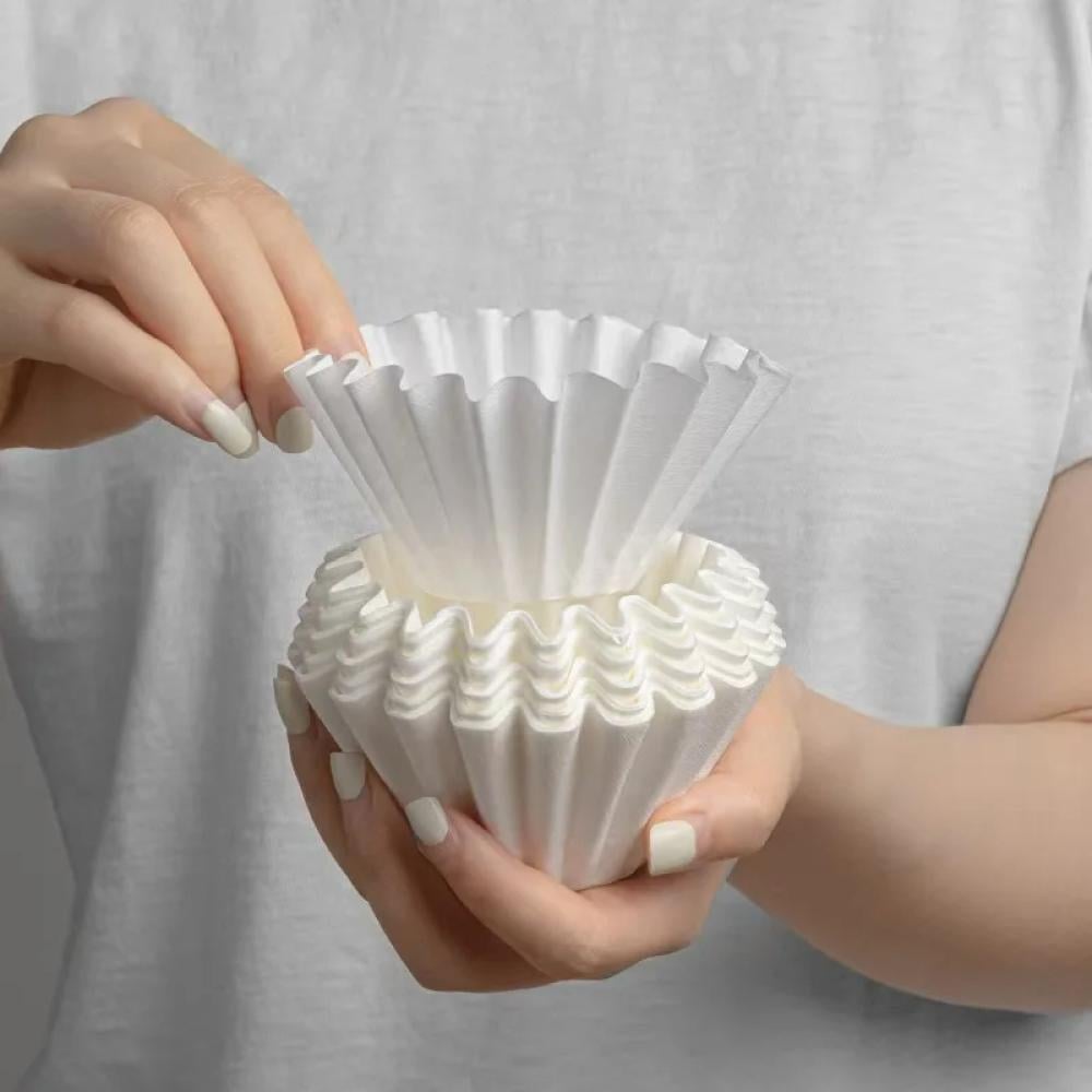 ورق فلتر إبريق قهوة يدوي، 50 قطعة علي شكل حرف V، مثالي لتحضير القهوة بطريقة تقليدية مع تحسين التصفية للحصول علي طعم نقي. تصميم مريح يناسب ماكينات القهوة امريكية.
